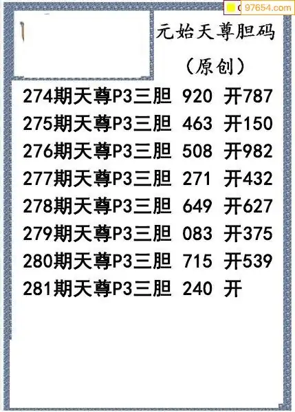 25281期元始天尊排列3胆码图