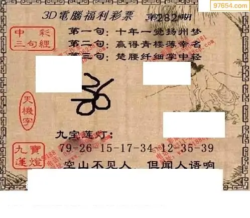 25282期福彩3D正版天宇和值谜