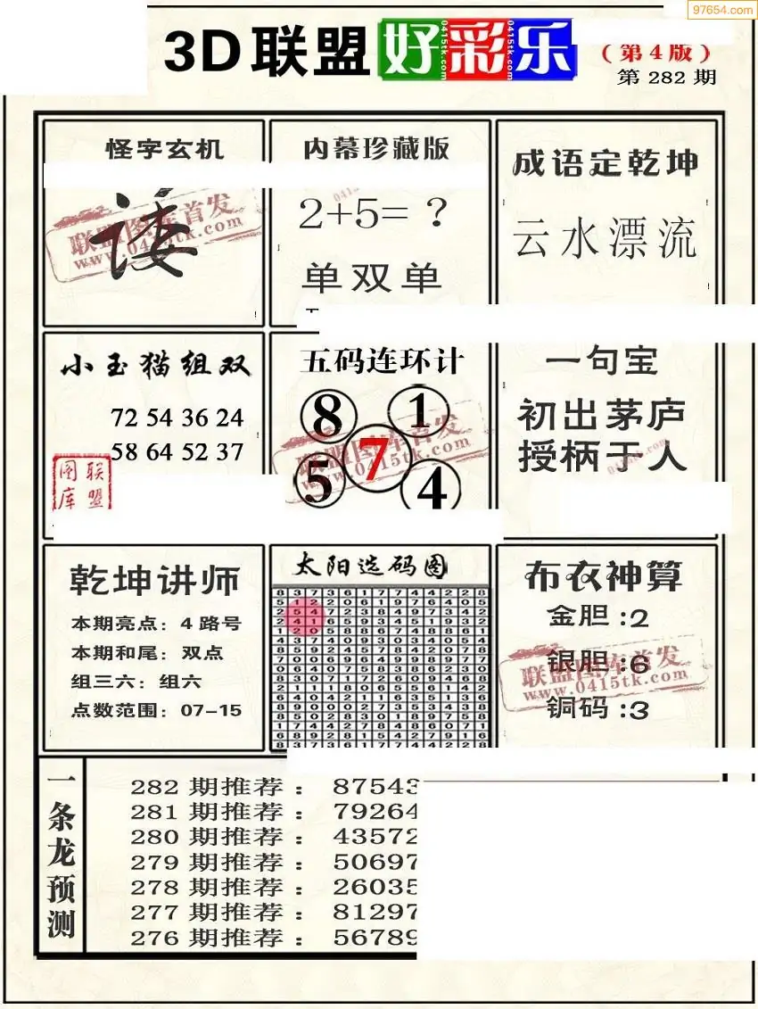 25282期3D彩民各类资料A版
