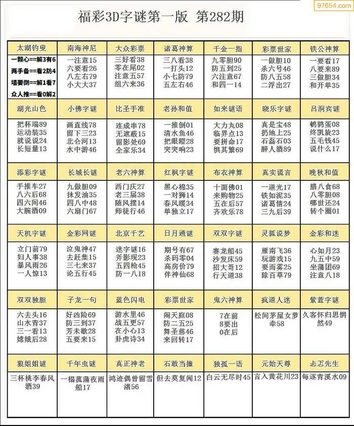 25282期3D天中原创预测字谜报