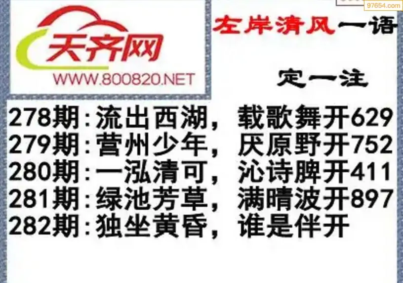 福彩3d左岸清风25年282期一语定一注