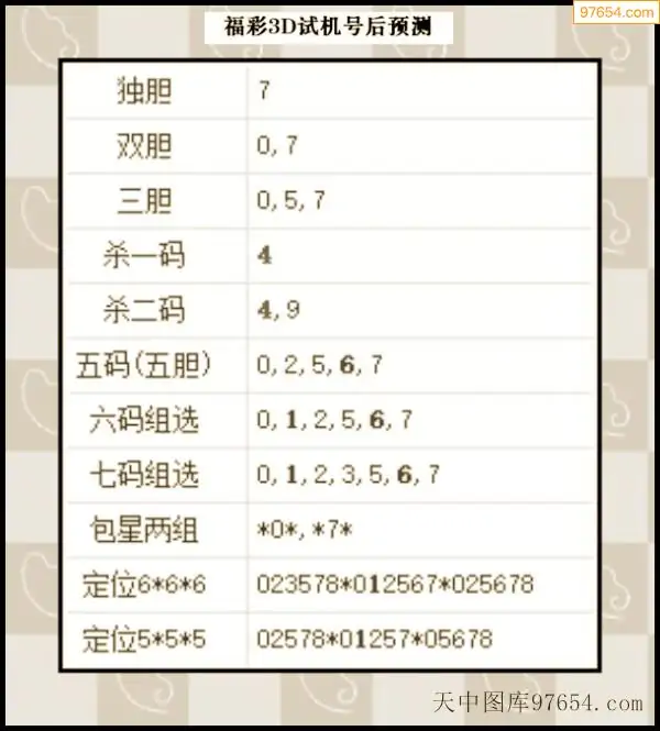 25年282期天中图库专家3D试机号后分析汇总