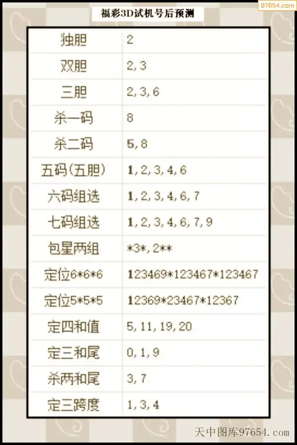 282期西南胆王预测本期3D开奖结果