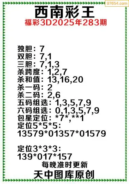 2025283期彩彩网3d原创图迷搜集(天中整理)