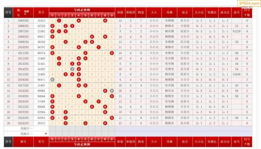 283期排列三历史号码对比图+数据走势分析