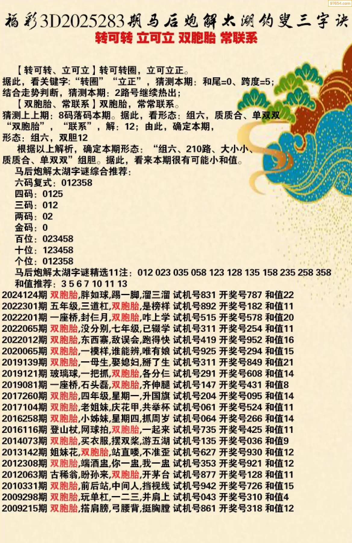 25年283期马后炮解3d太湖钓叟之 双胞胎