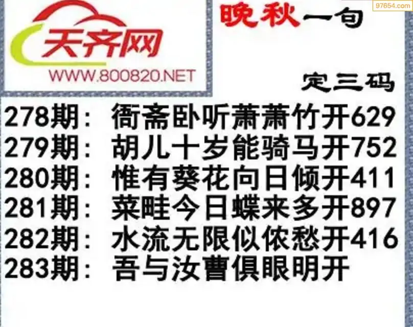 283期3D晚秋(乙种和值)谜:期和去一 D:胆中有福