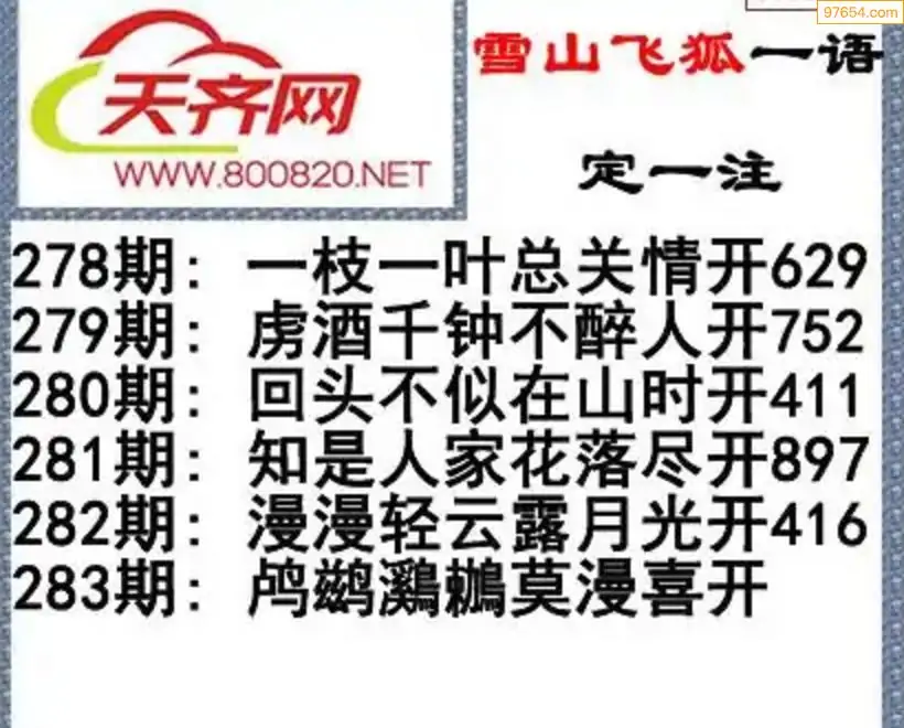 彩票3d字谜283期雪山飞狐一语定一注
