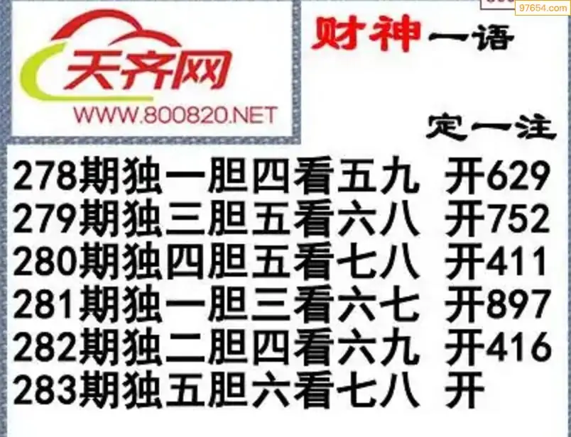 283期3D晚秋(乙种和值)谜:期和去一 D:胆中有福