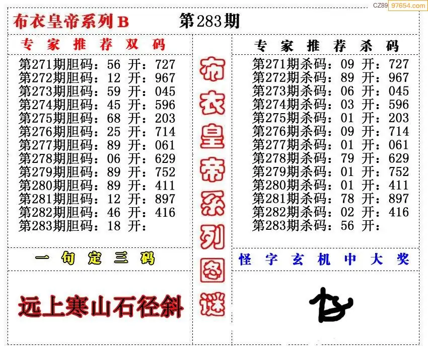 25283期3D布衣皇帝AB(新版)