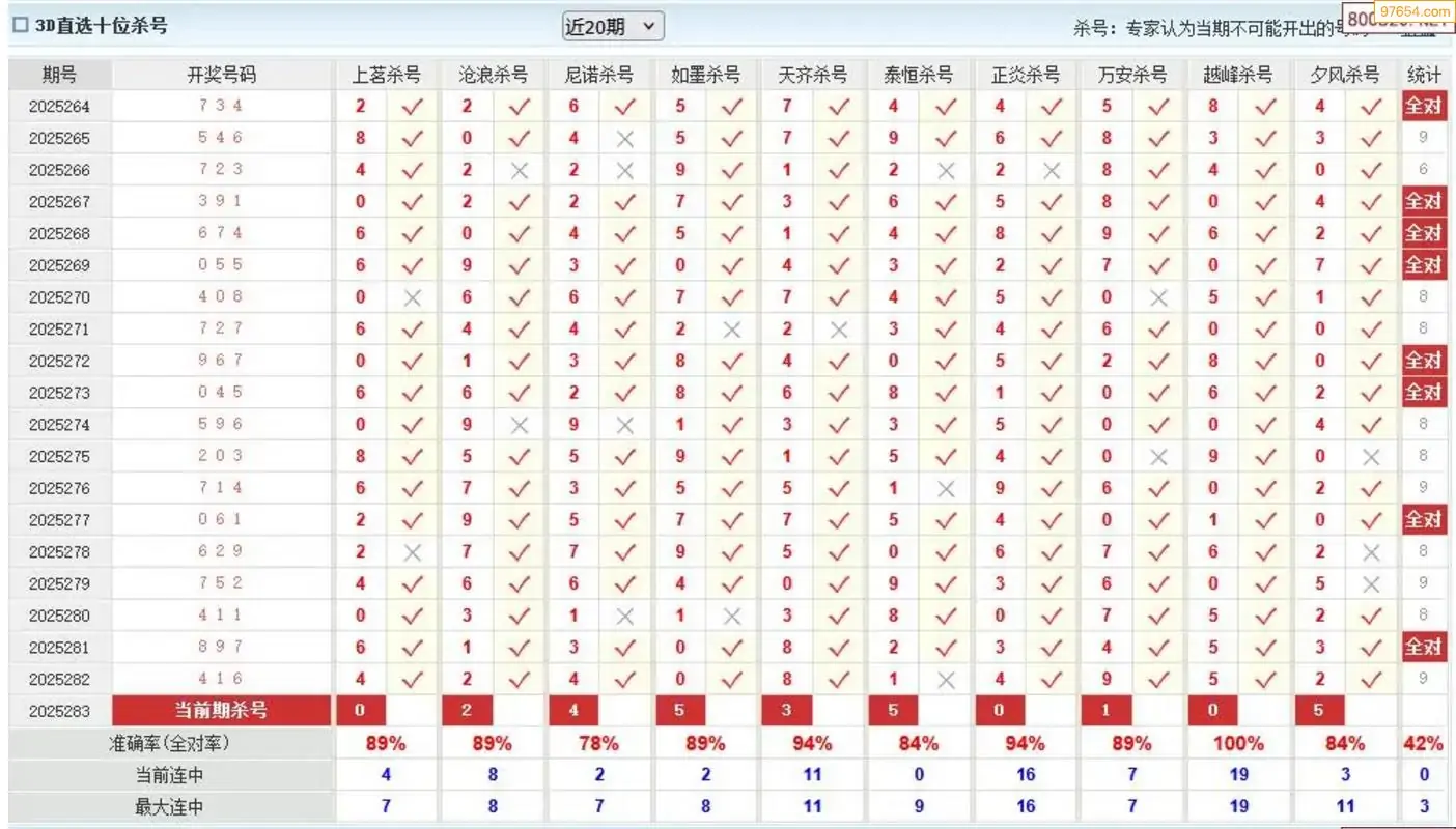 泰山压顶福彩283期3d专家杀一码 11连中