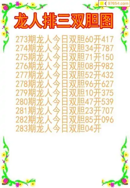 25283期龙人排列3双胆图