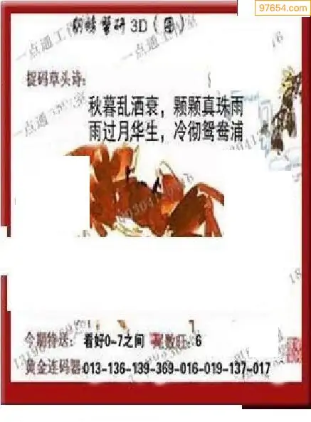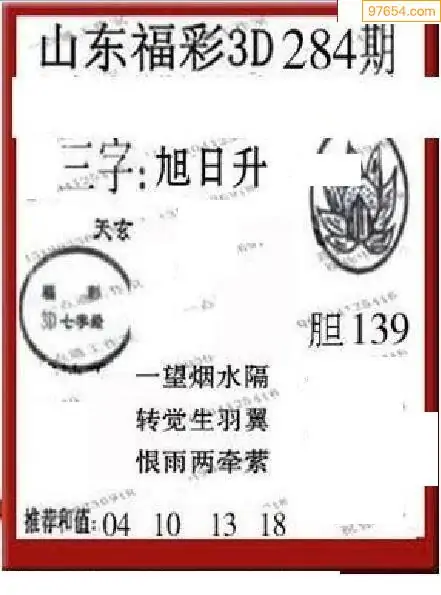 25284期福彩3D正版天宇和值谜