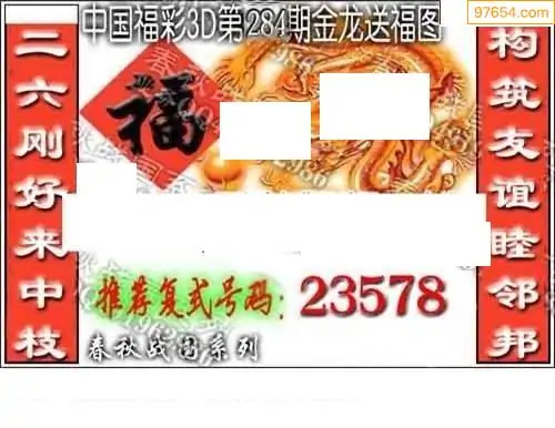 25284期福彩3D正版天宇和值谜