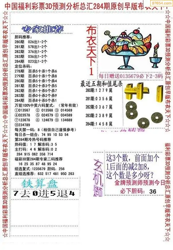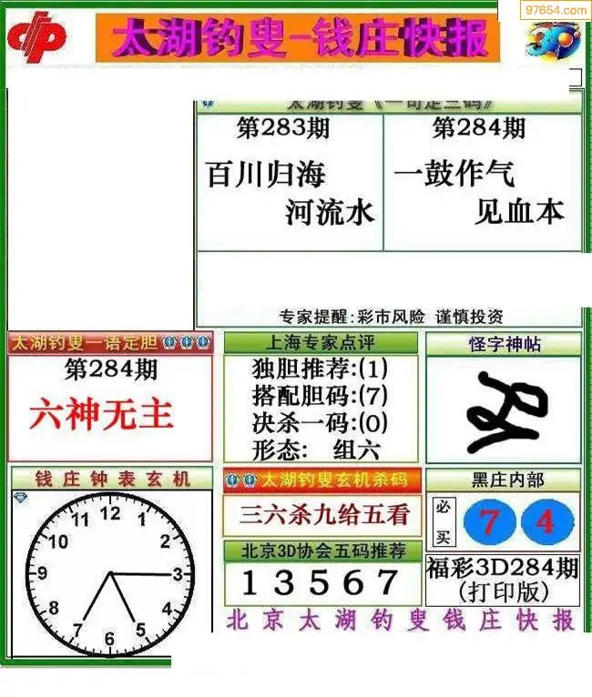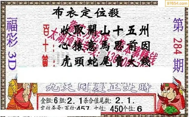 福彩3D284期天牛彩吧套图整合总汇