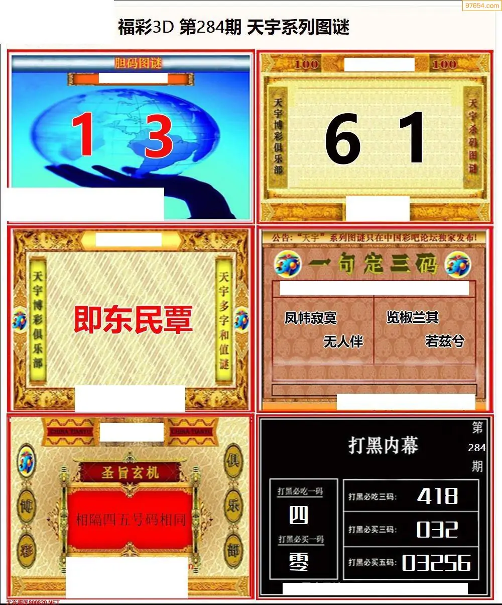 福彩3D284期天牛彩吧套图整合总汇