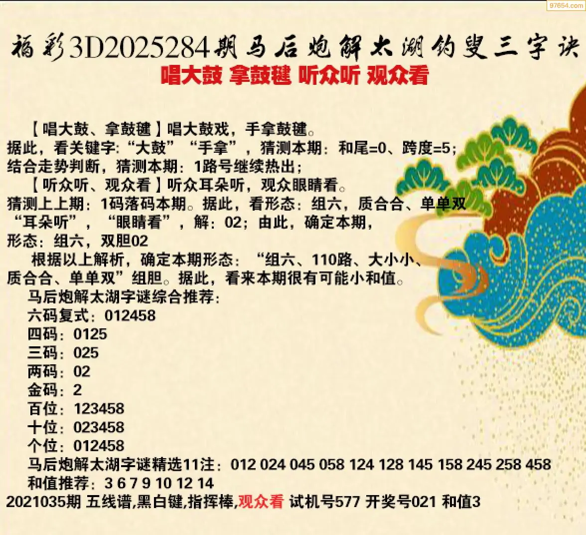 25年284期马后炮解3d太湖钓叟之 唱大鼓