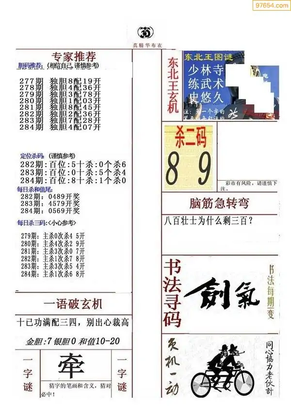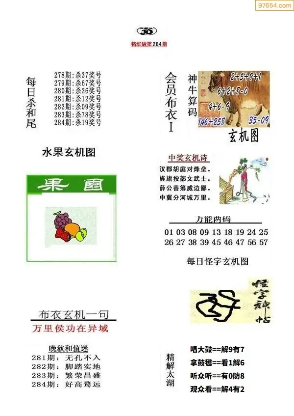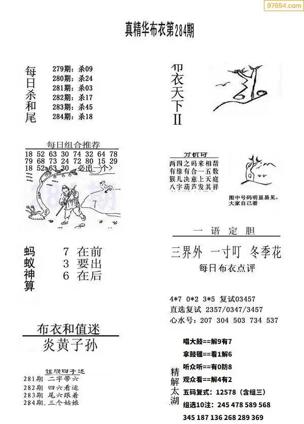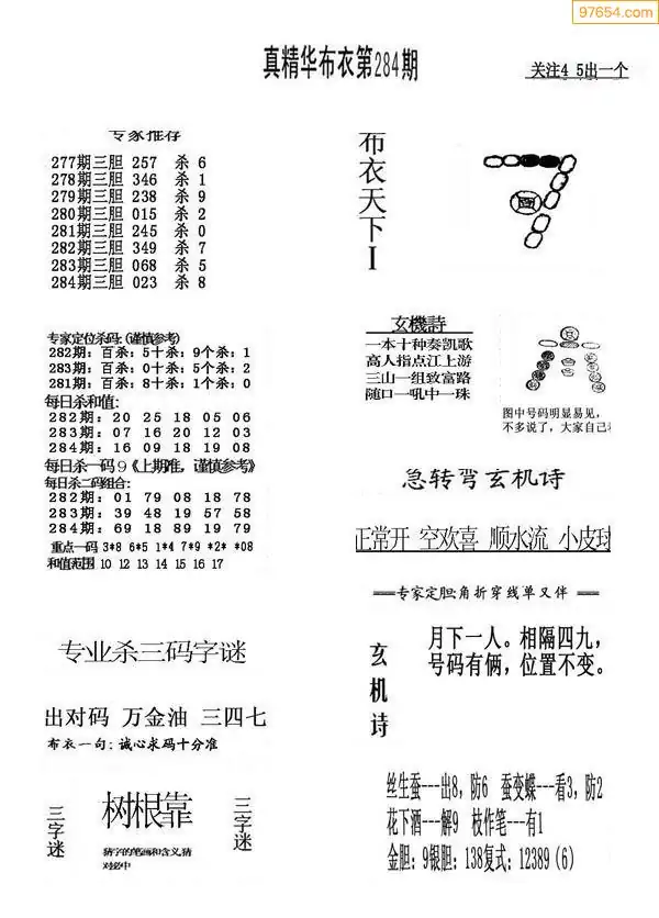284期真版布衣神算专家推荐