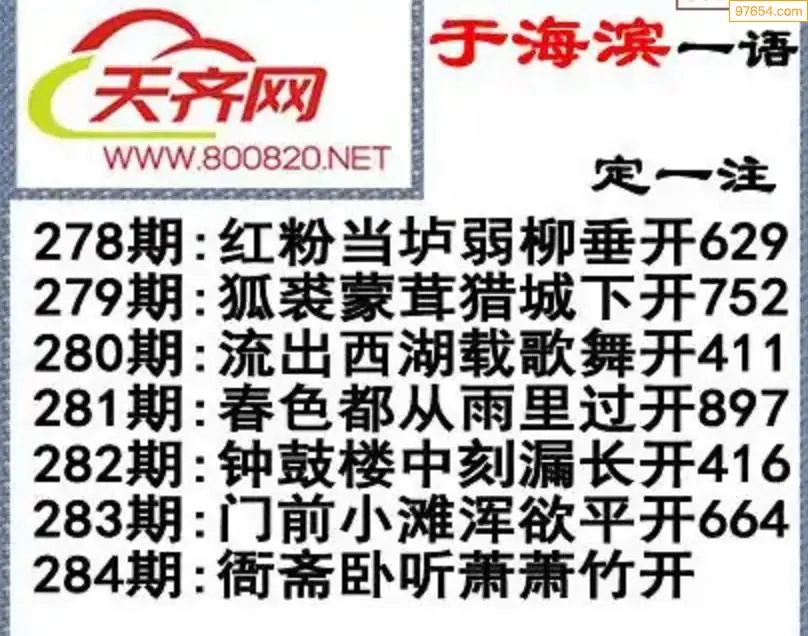 284期3D晚秋(乙种和值)谜:本期不中 D:酒洒两点