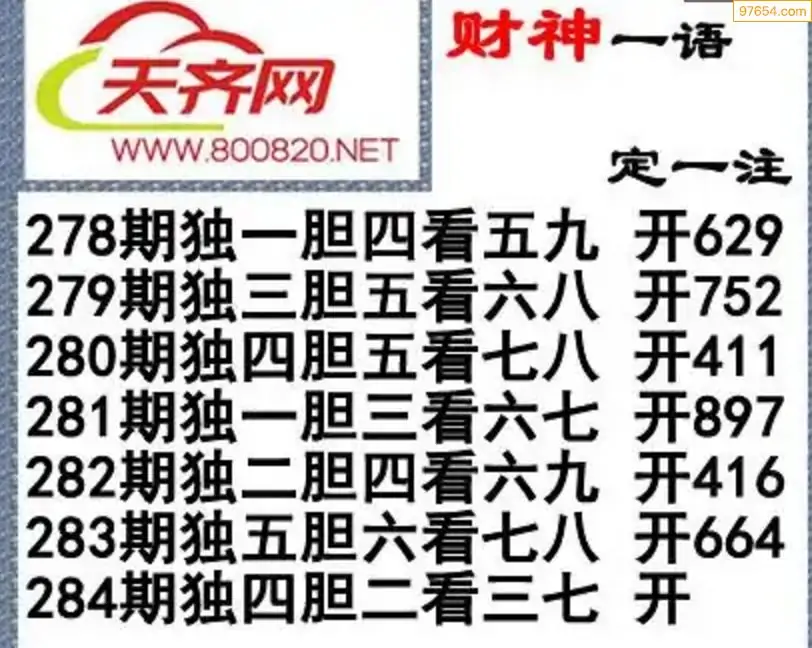 284期3D晚秋(乙种和值)谜:本期不中 D:酒洒两点