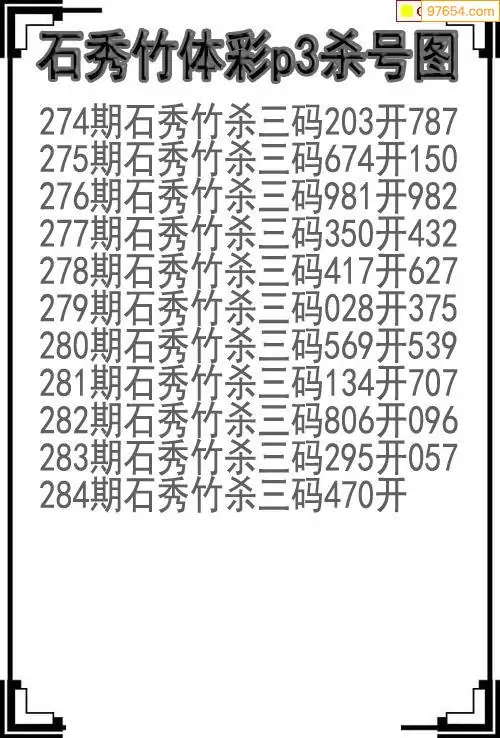25年284期体彩p3石秀竹杀号图