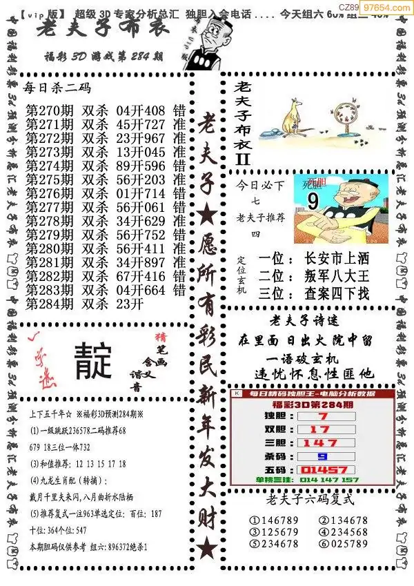 福彩284期3d真精华布衣+布衣早报(转载)