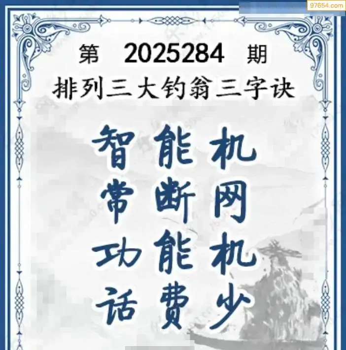 25年体彩p3第284期大钓翁三字诀