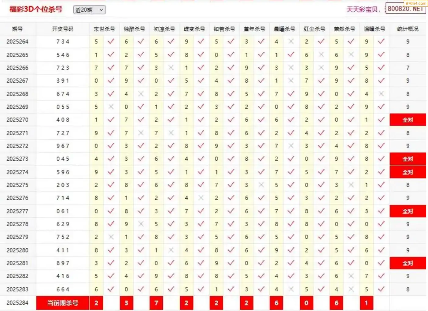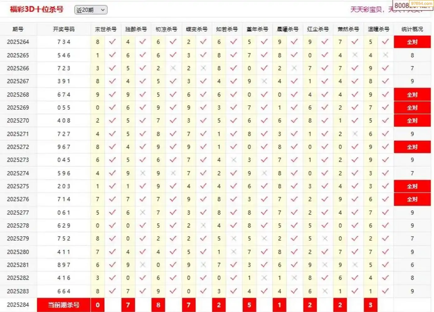 3D284期天中财神原创杀码条件汇总