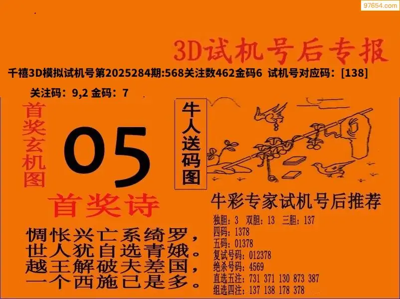 25284期福彩3D试机号后首奖诗