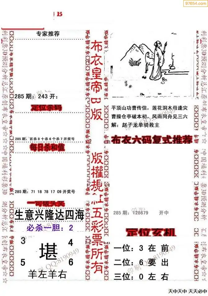 福彩3d285期新禧布衣定位杀号
