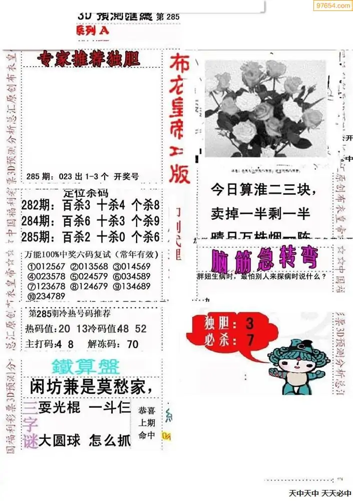 福彩285期3d真精华布衣+布衣早报(转载)