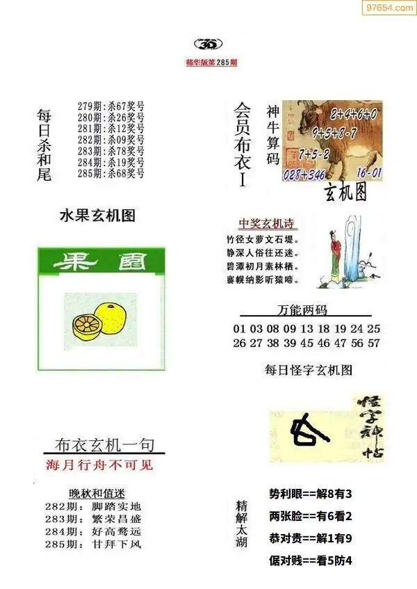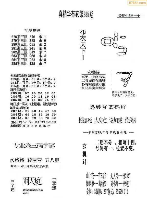 285期真版布衣神算专家推荐