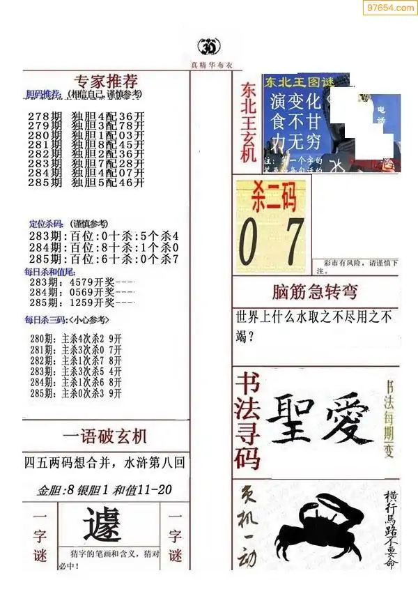 福彩285期3d真精华布衣+布衣早报(转载)