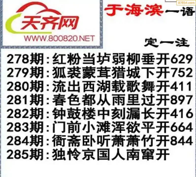285期3D晚秋(和值)谜:本期没我 D:八要右半