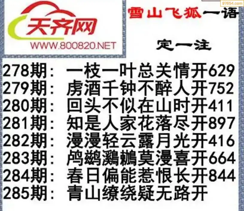 285期3D晚秋(和值)谜:本期没我 D:八要右半