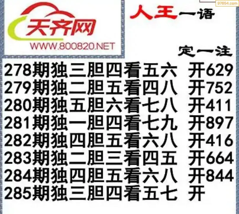 285期3D晚秋(和值)谜:本期没我 D:八要右半