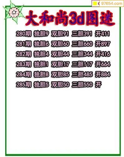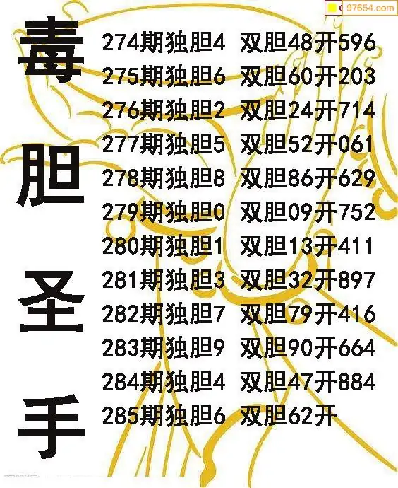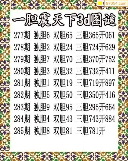 285期97654本站收集胆码出号预测