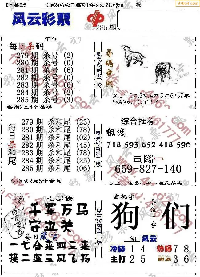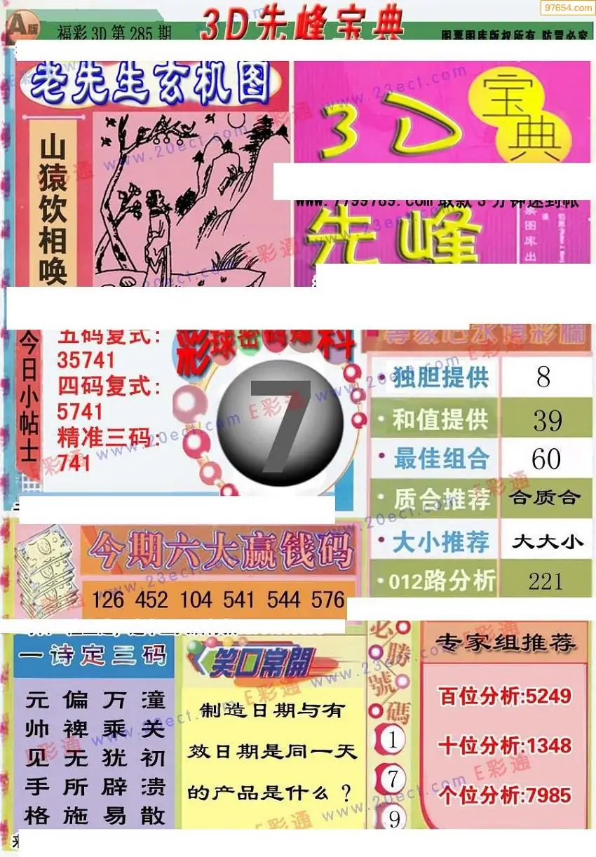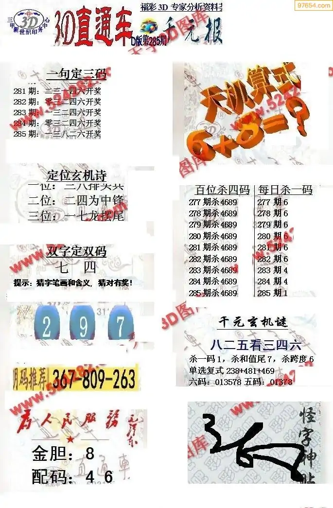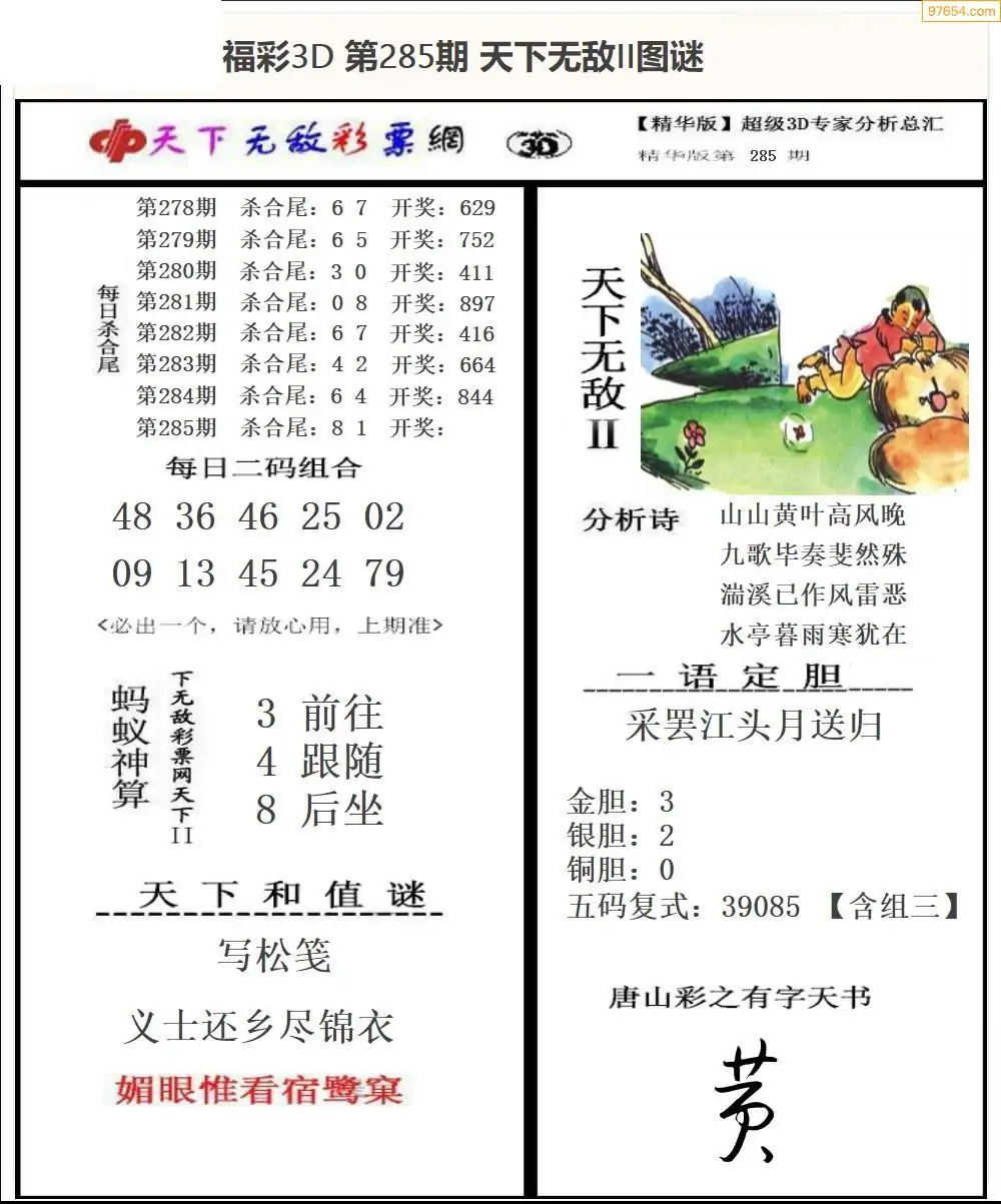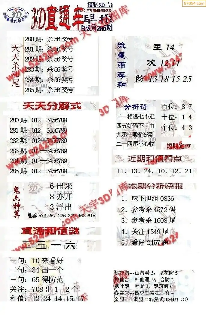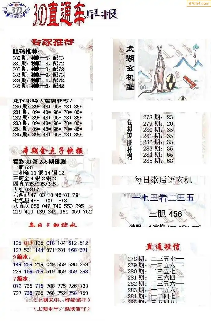 25年285期3d选号彩报图谜画谜