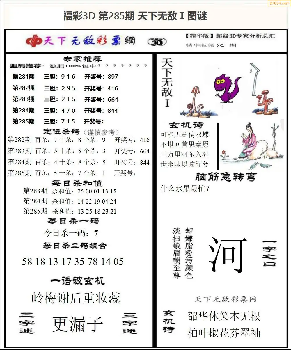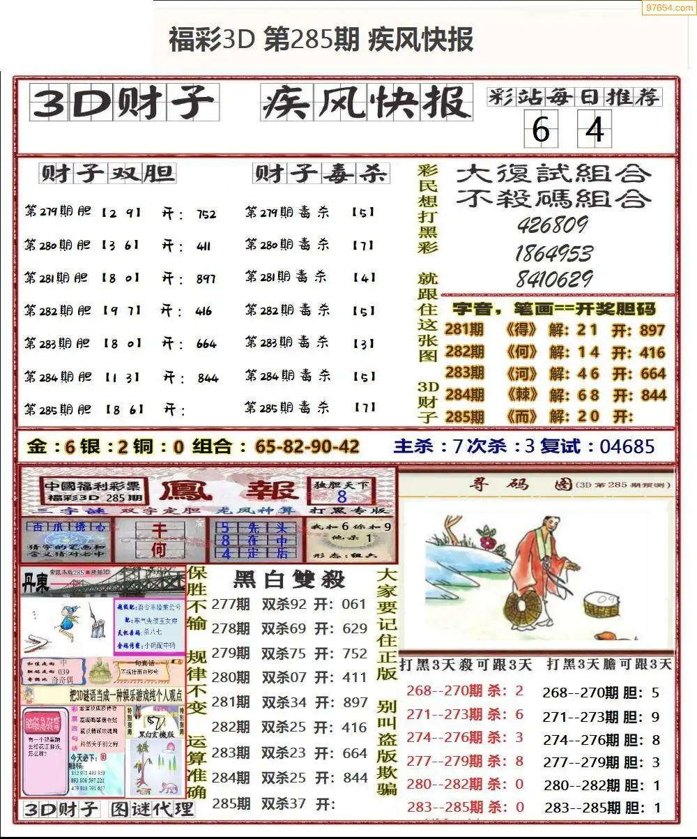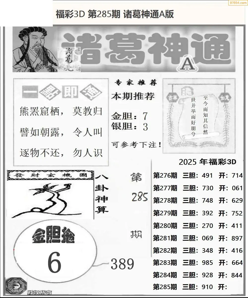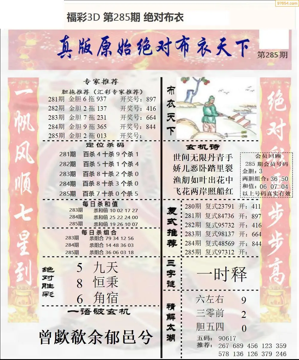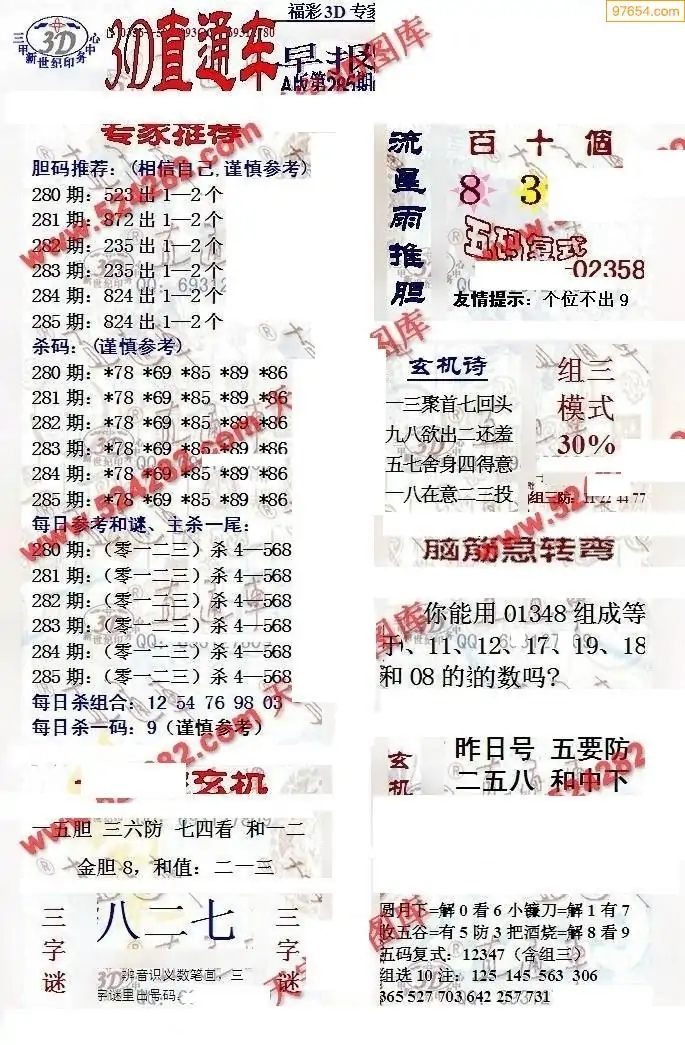 福彩3D285期天牛彩吧套图整合总汇