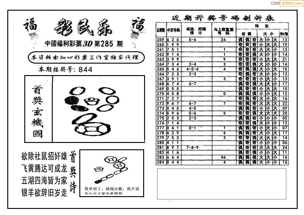 2025年福彩彩民乐285期