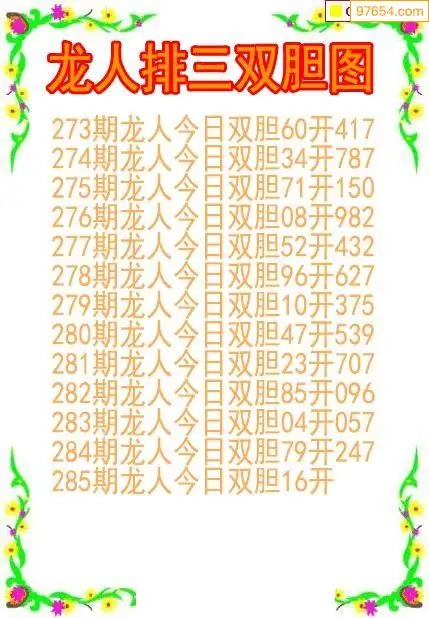 25285期龙人排列3双胆图