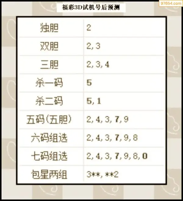285期西南胆王预测本期3D开奖结果