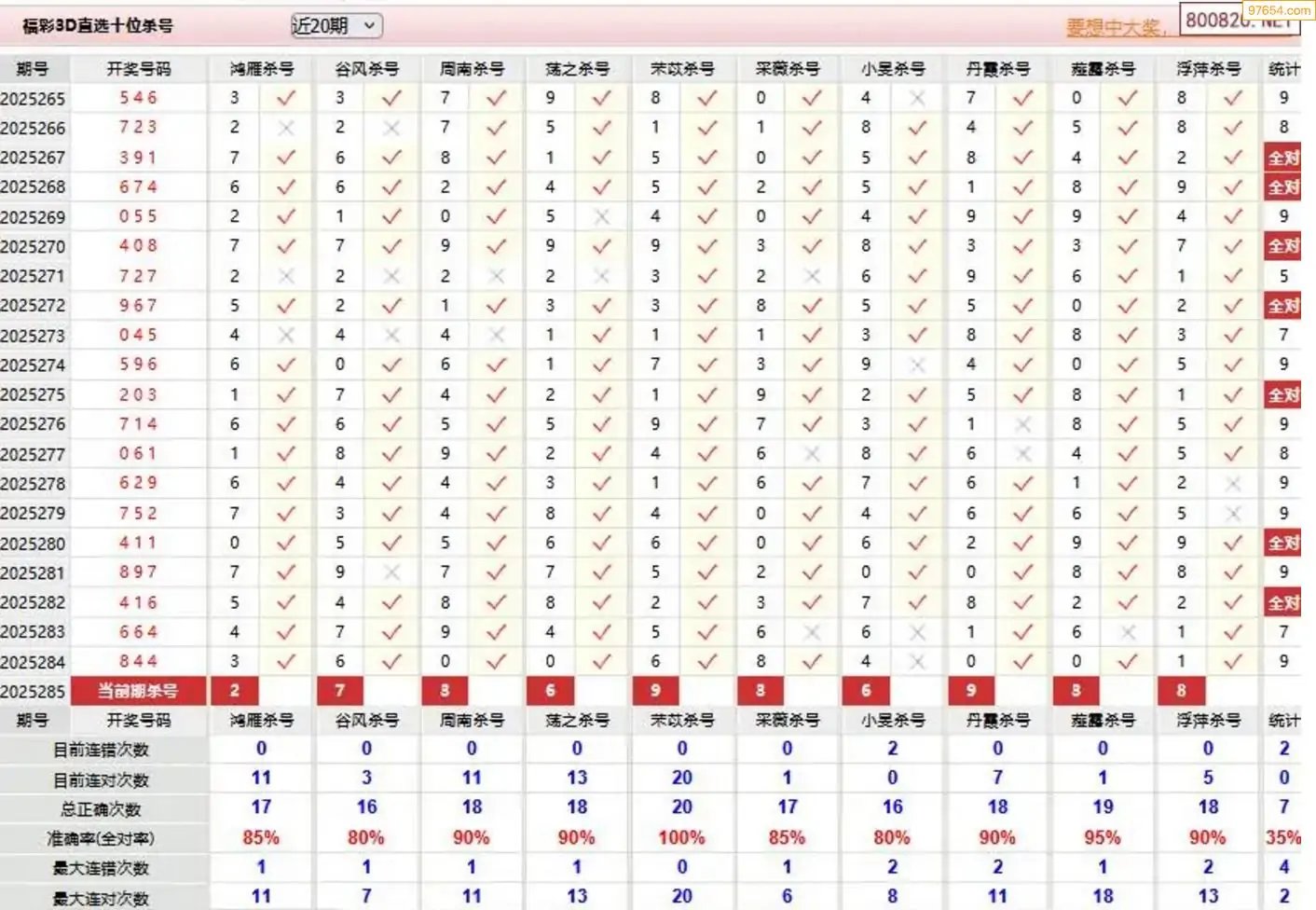 福彩3D25年286期非诚勿扰杀两号 4连中
