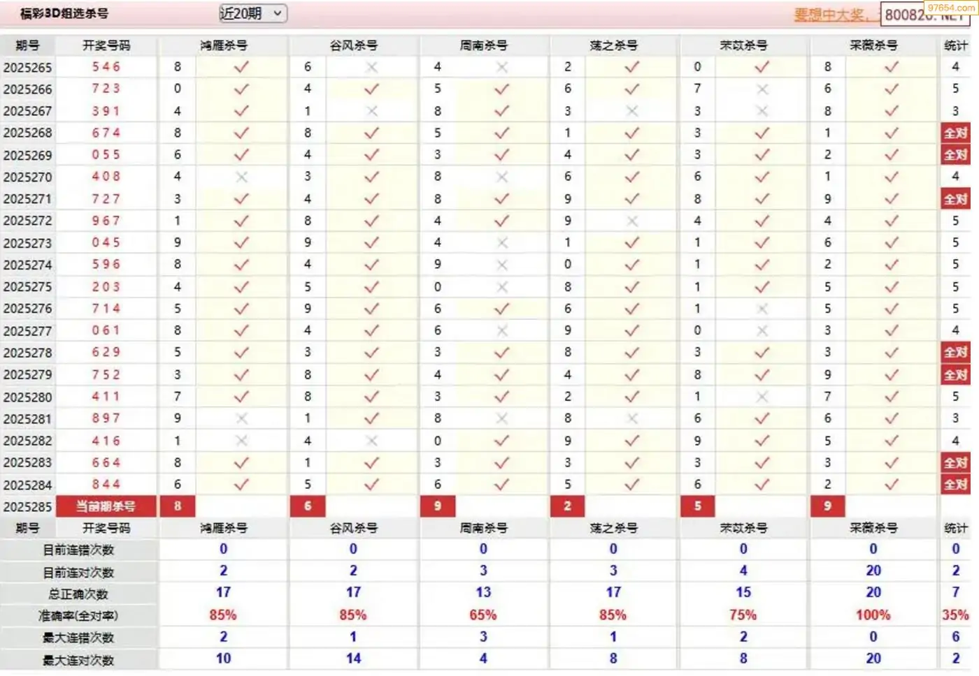 福彩3D25年286期非诚勿扰杀两号 4连中