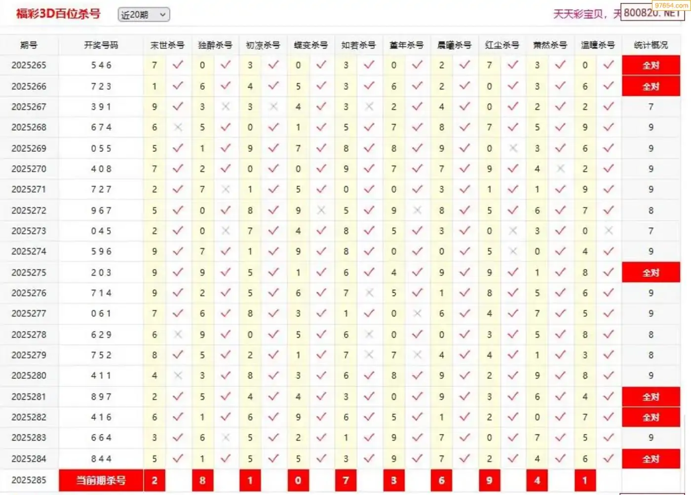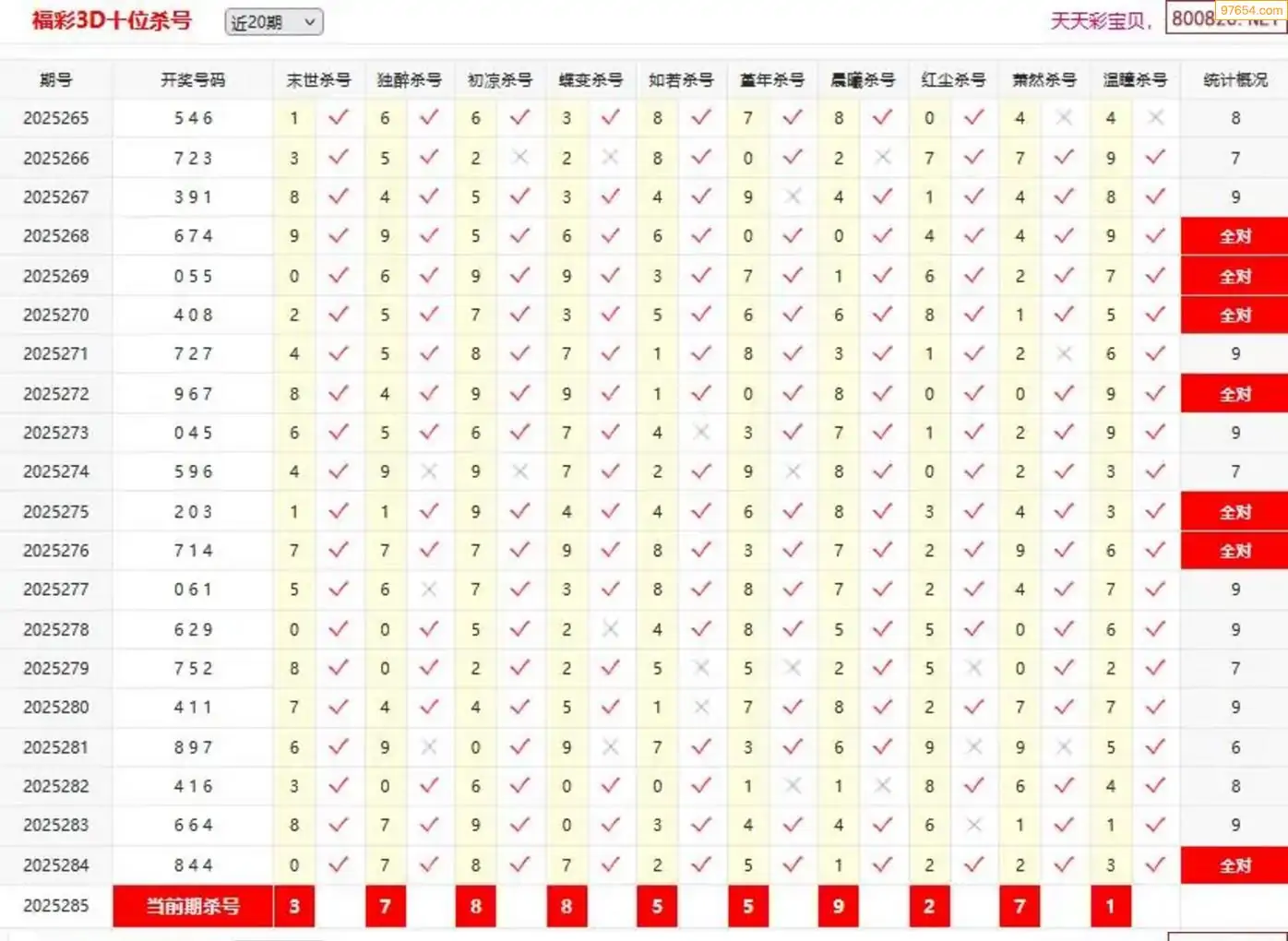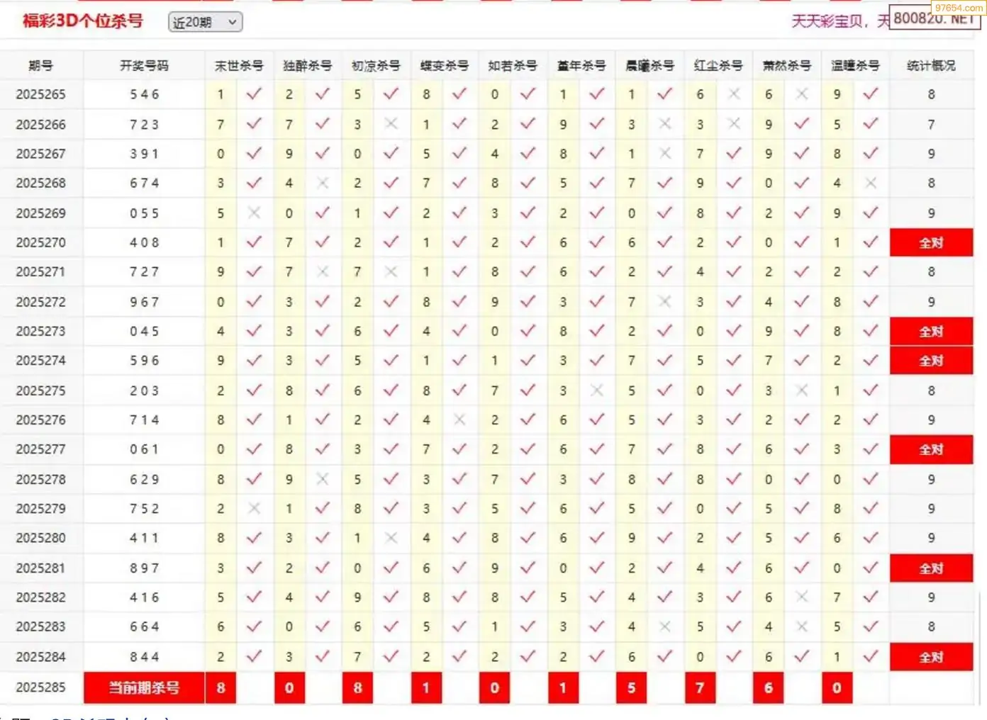福彩3D25年286期非诚勿扰杀两号 4连中