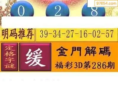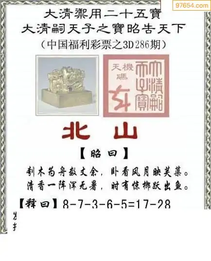 25286期福彩3D正版天宇和值谜