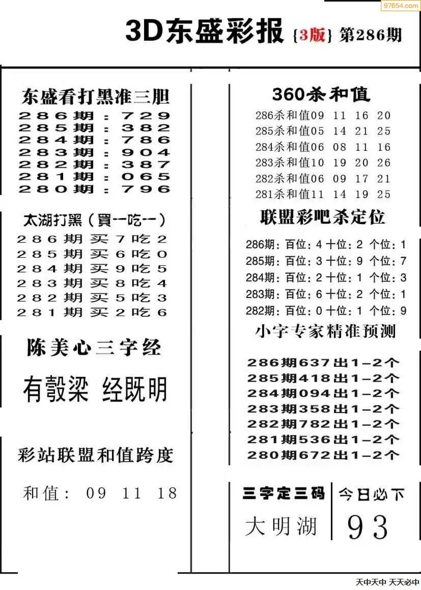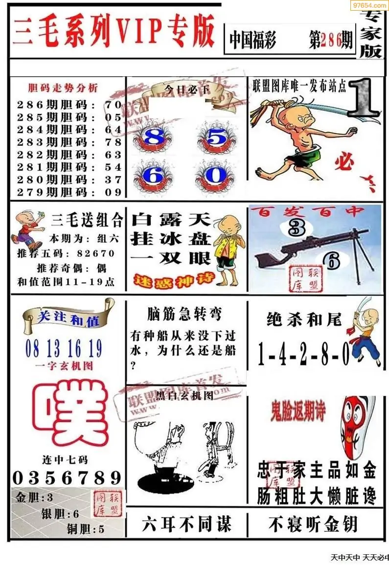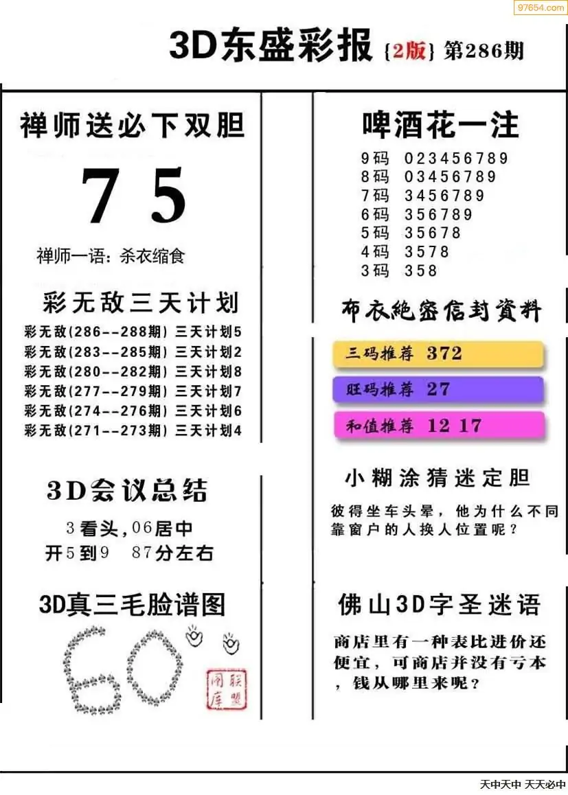 福彩3D286期天牛彩吧套图整合总汇