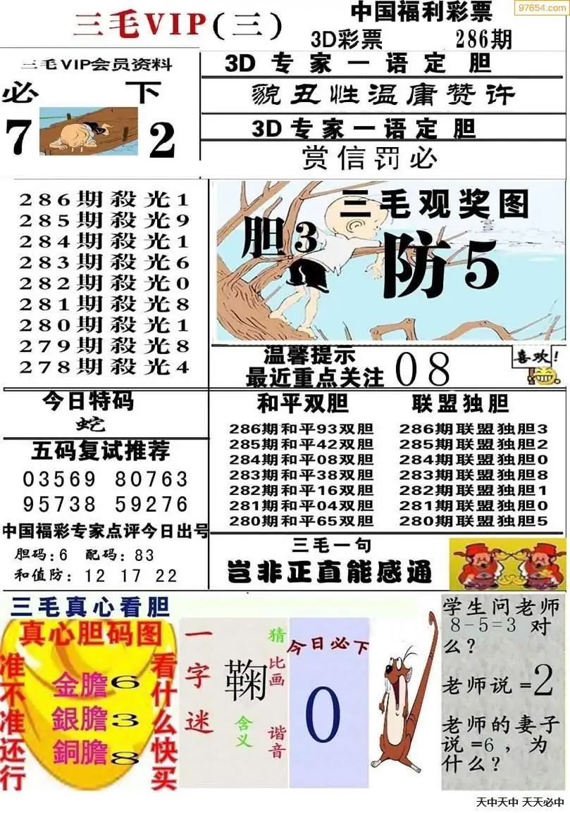 25年286期3d选号彩报图谜画谜