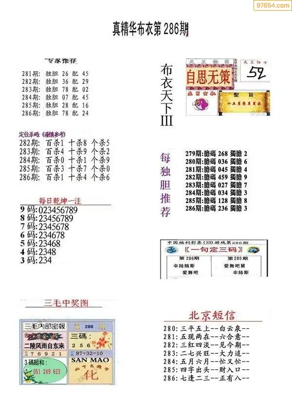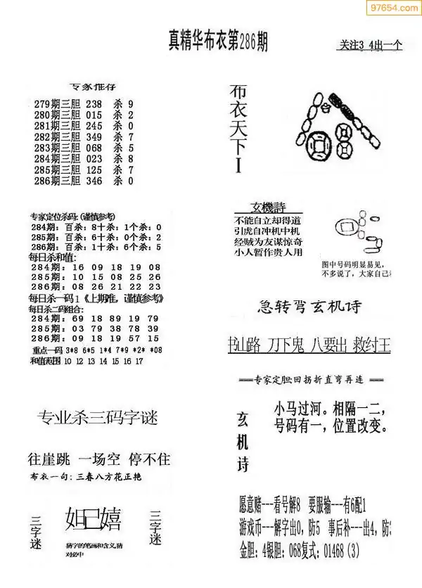 福彩286期3d真精华布衣+布衣早报(转载)