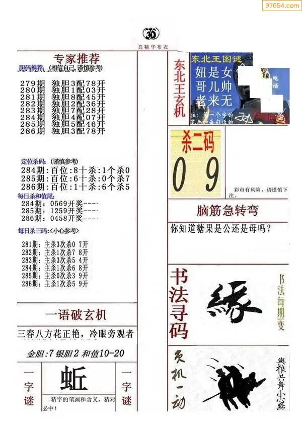 286期真版布衣神算专家推荐